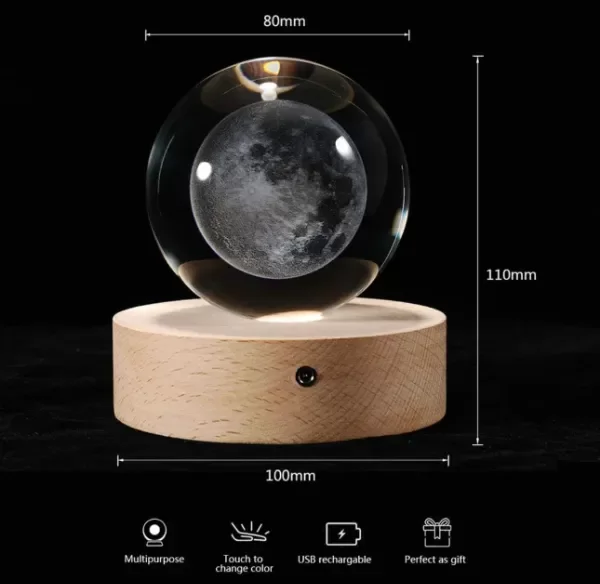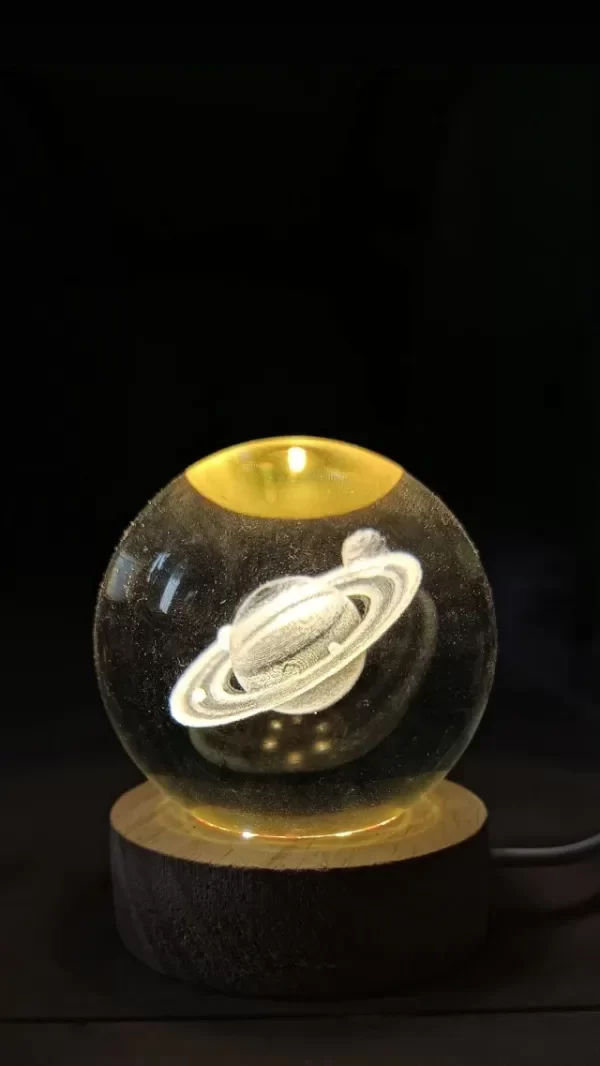 Iluminá los momentos especiales con este velador de luz tenue cálida, diseñado para crear un ambiente acogedor y mágico. Su esfera de cristal delicadamente grabada, aporta un toque único y cálido a cualquier espacio.