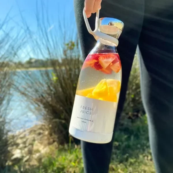 Llévalo contigo a cualquier lugar y haz jugo fresco sobre la marcha. ¡Una carga completa dura más de 15 mezclas!
