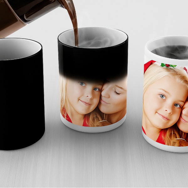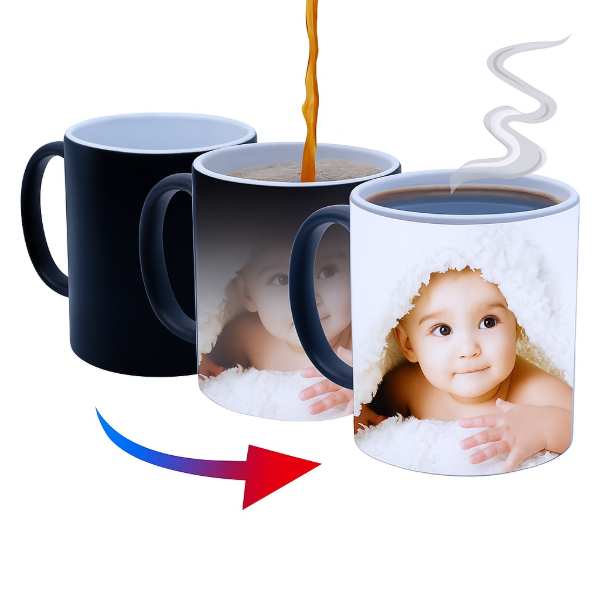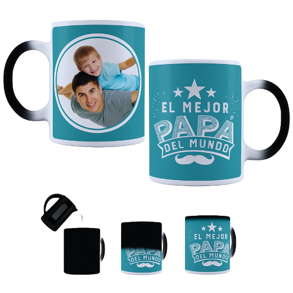 en contacto con agua/infusión caliente, este barniz desaparece, la taza cambia de color y deja ver el estampado en su totalidad.